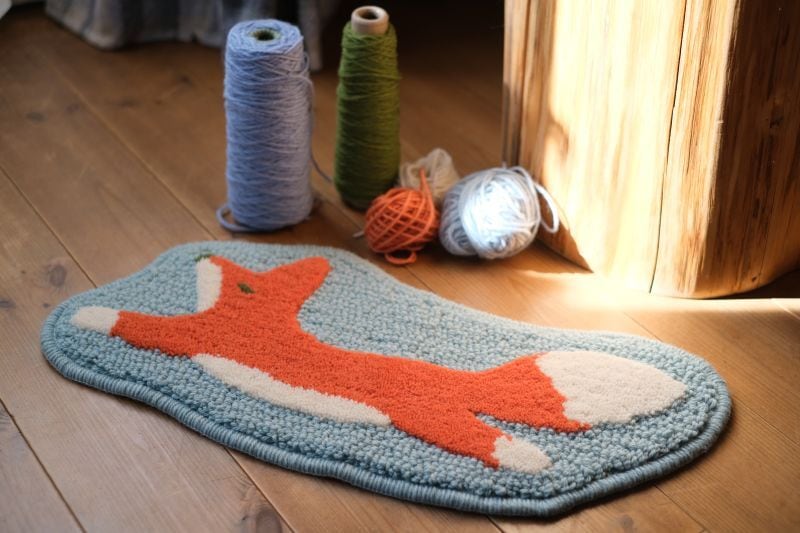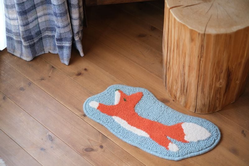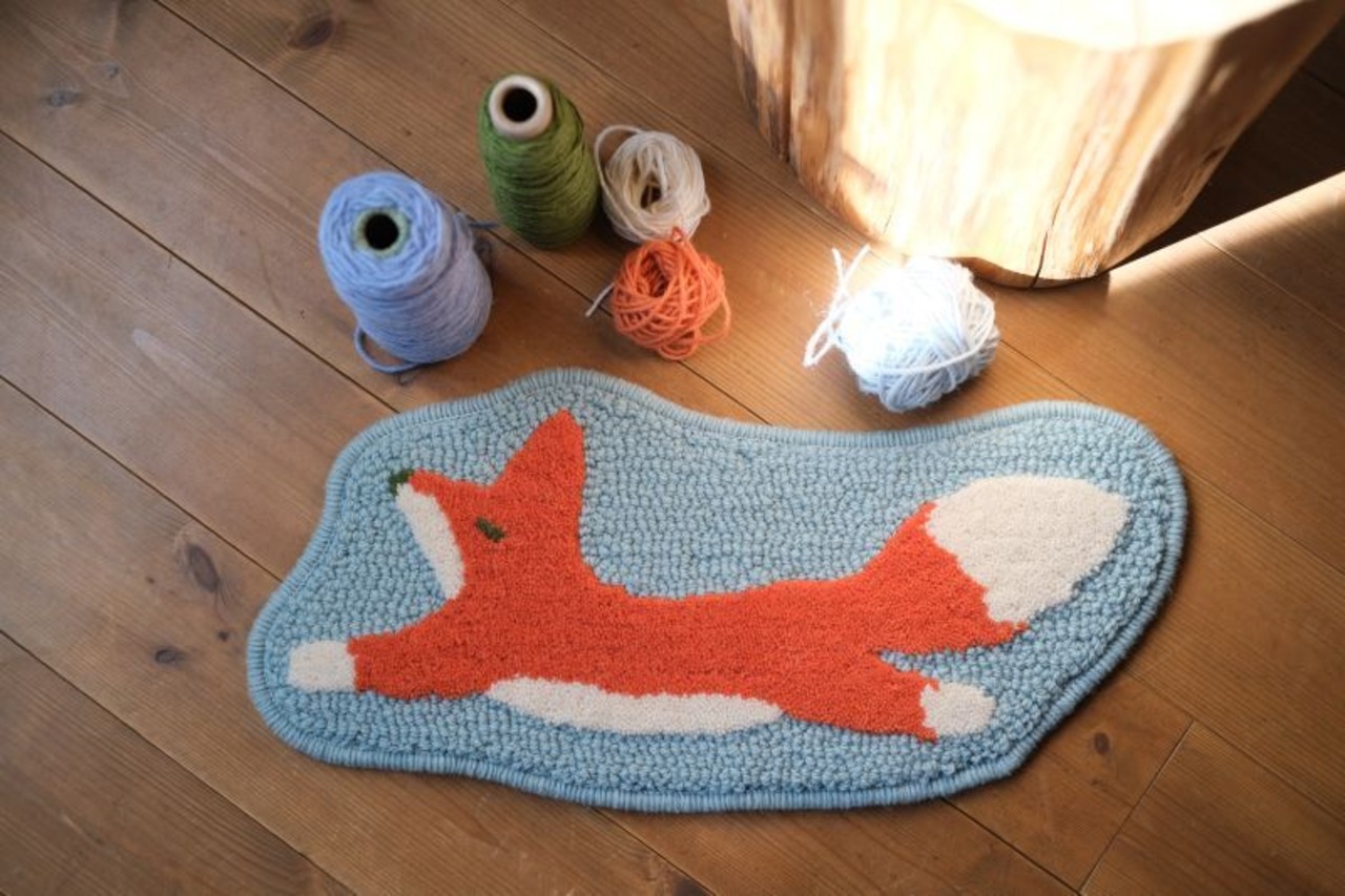 ブルーグレーの空を軽やかに飛んでいるキツネのように、このラグをこれまでよりさらに自由にお楽しみいただけたらと思います。
