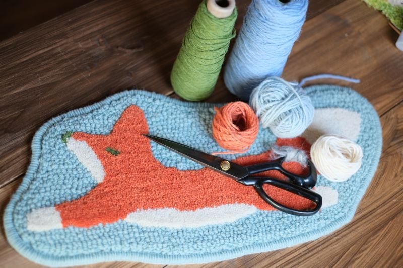 毛糸ラグの性質上遊び毛が発生いたしますが、毛糸を引っ張らずにハサミでお切りください。