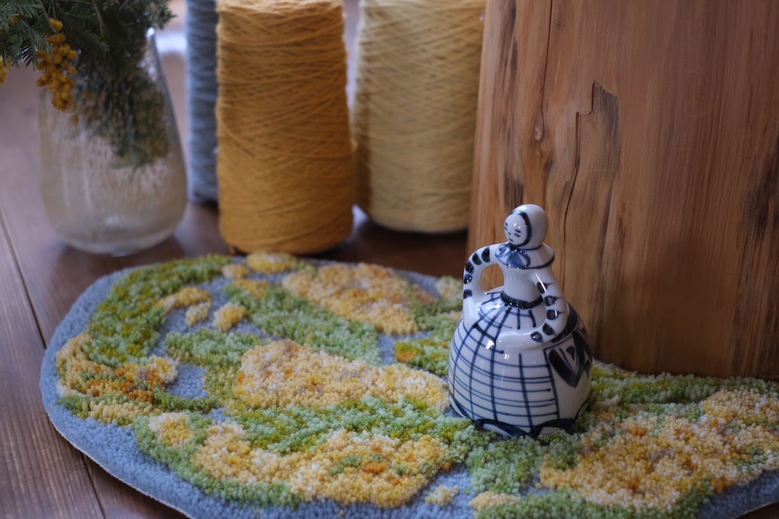 春の風に揺れている、心を少し軽やかにしてくれるミモザのラグをつくりました。