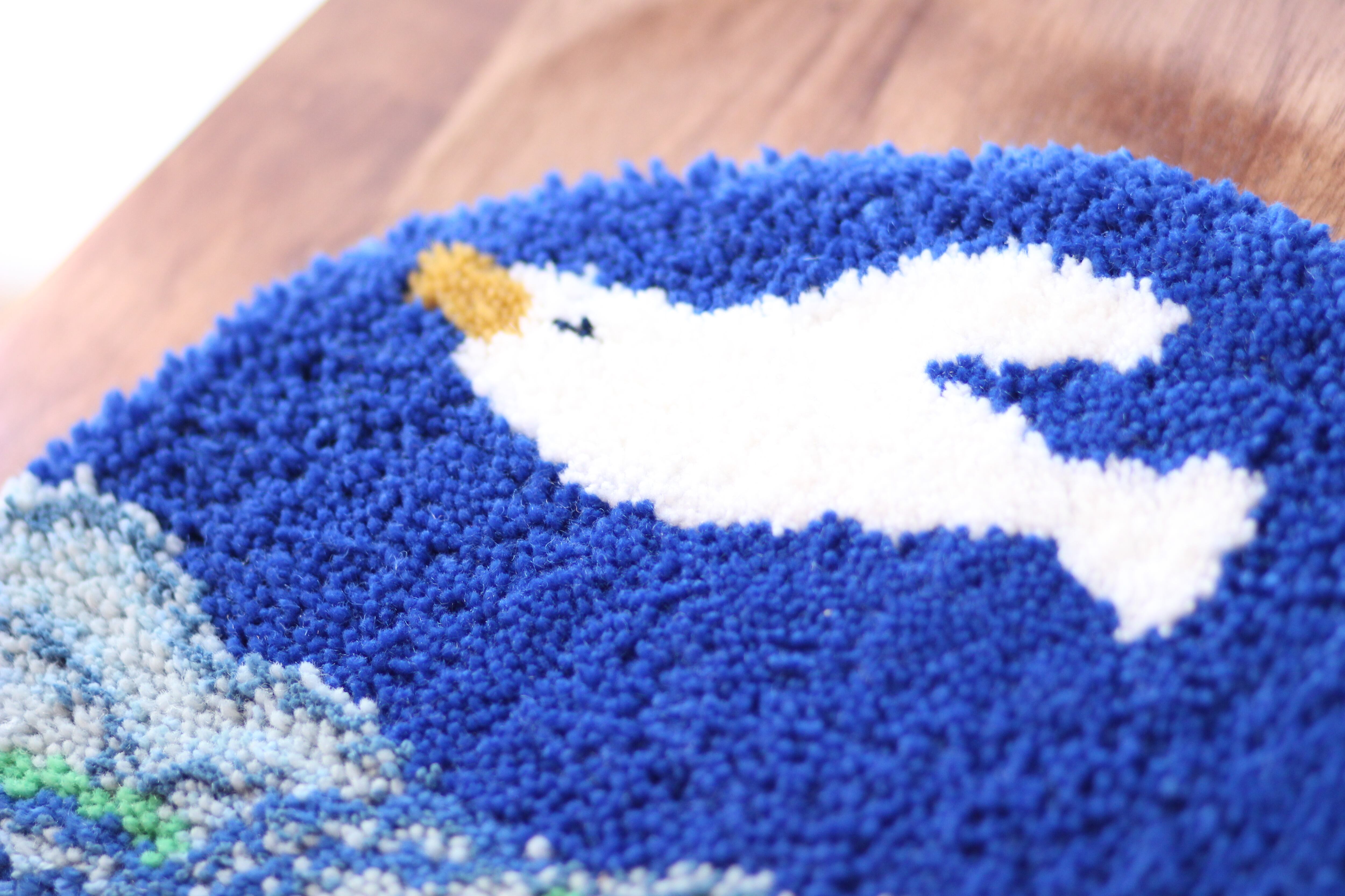 毛糸ラグの性質上遊び毛が発生いたしますが、飛び出た部分のみ鋏でカットしてください。