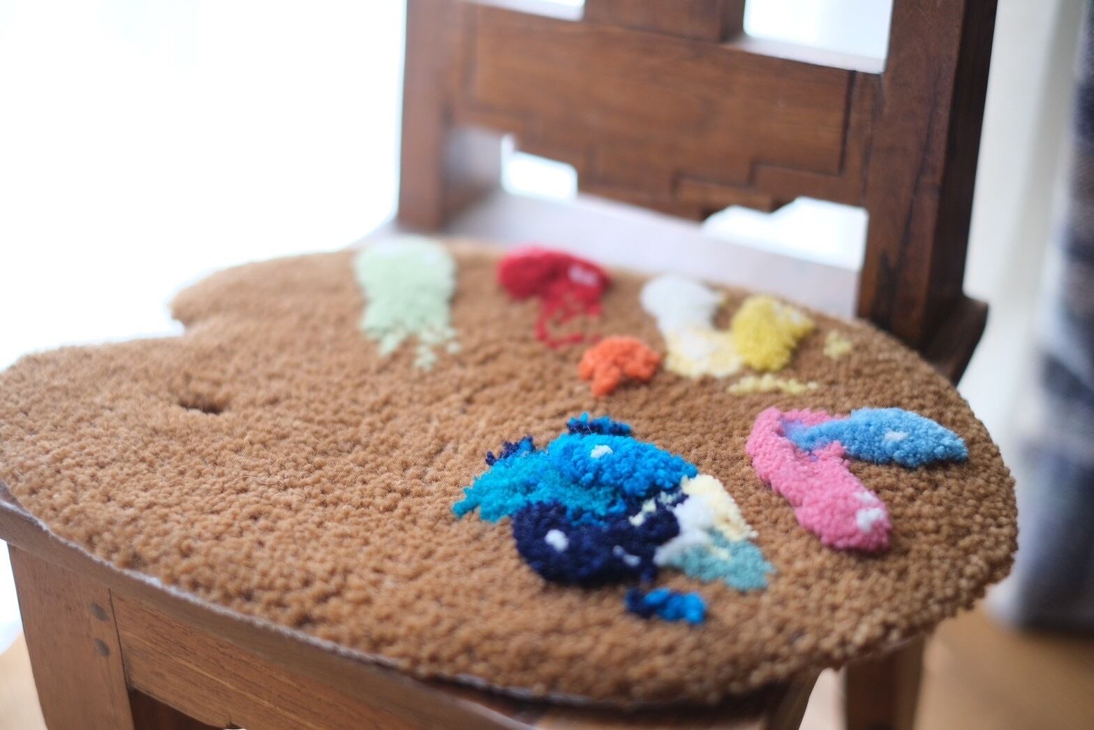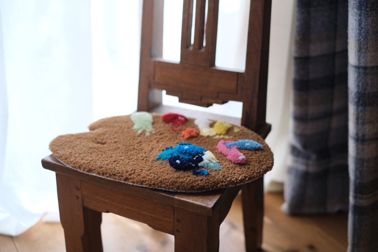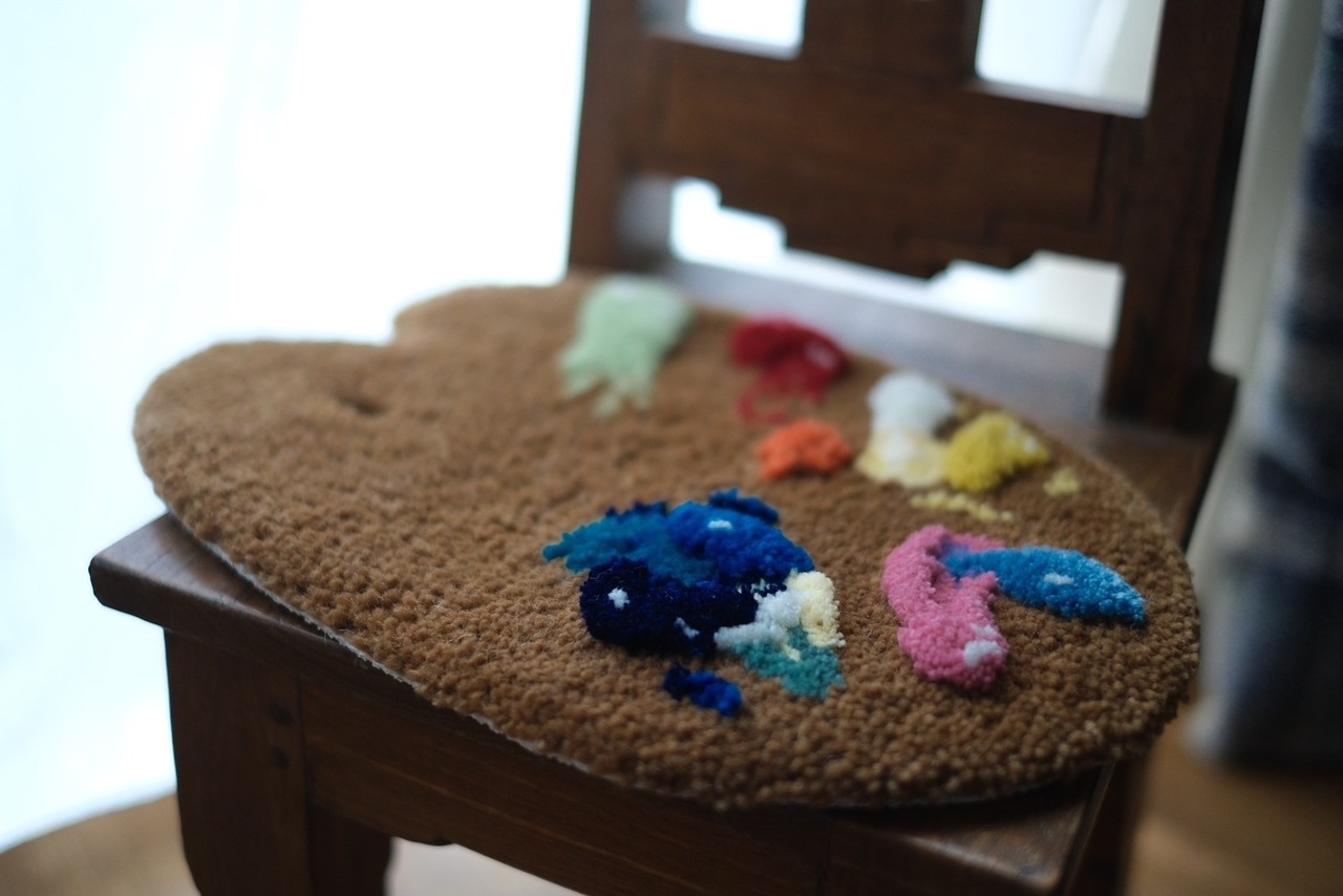 机の上で、ハサミやペンなどを置くために、小さいパレットを作りました。