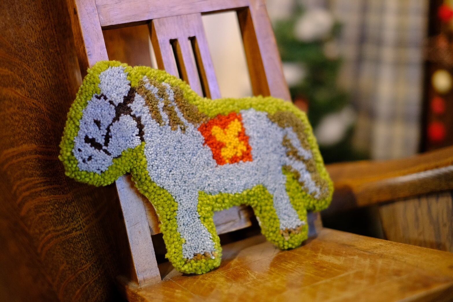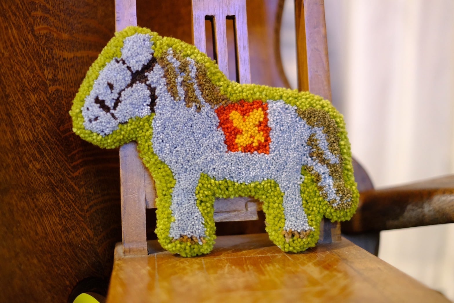 ラグ用に作られたウールとアクリルの毛糸混合で制作しました。