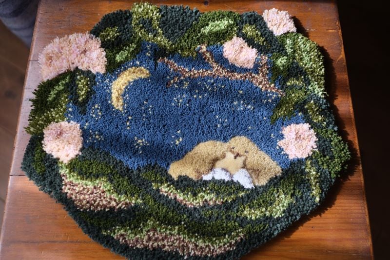 毛糸ラグの性質上遊び毛が発生いたしますが、手で優しく取り除いてください。